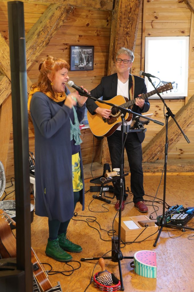 Musik zum Mittsommer-Abend ist immer etwas Besonderes im Fontane Garten. Ein wenig vom Flair der „Fête de la Musique“ klingt an, wenn das Singer/Songwriter Duo LITEBELEW mit ihrem Auftritt loslegen. Stücke aus Rock, Pop, Blues und Folk machen das Reportoire aus. Der zweistimmige Gesang, untermalt durch den vollen Klang der Akustik-Gitarren, ist das Markenzeichen der beiden Musiker Andreas Wennemann und Constanze Jaiser aus Mecklenburg-Vorpommern. LITEBELEW – himmelblau. Der Bandname ist Programm: mal strahlende – mal etwas melancholisch angehauchte Songs bezaubern mit einer magischen, augenzwinkernden aber dabei dennoch tiefsinnigen Atmosphäre.