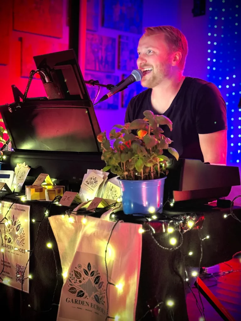 Hallo! Wir sind die Garden Echoes, eigentlich Jule und Christoph und zusammen mit Ukulele und Klavier lieben wir es, Musik zu machen. Für uns selbst und für andere. Und wenn wir dabei noch berühren – umso schöner!