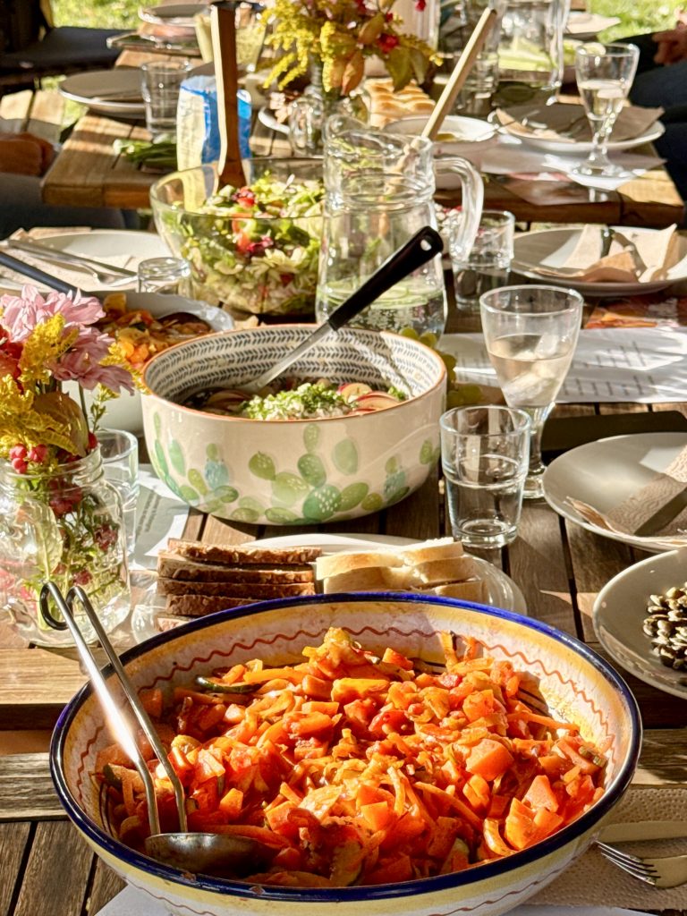 Genauso wichtig ist das Miteinander: Zeit für Austausch, gute Gespräche und entspannte Momente gehören genauso dazu wie das gemeinsame Schnippeln und Rühren. Zum Abschluss kommen wir an der großen Tafel zusammen und genießen, was wir gemeinsam geschaffen haben.