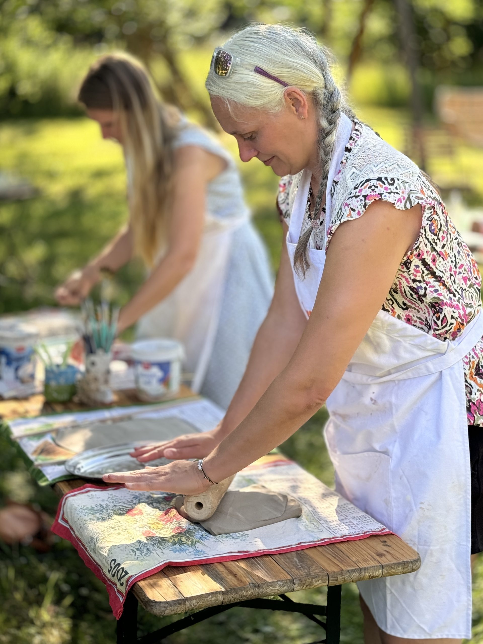 - Kreativer Teil (Acrylmalerei oder Keramik)